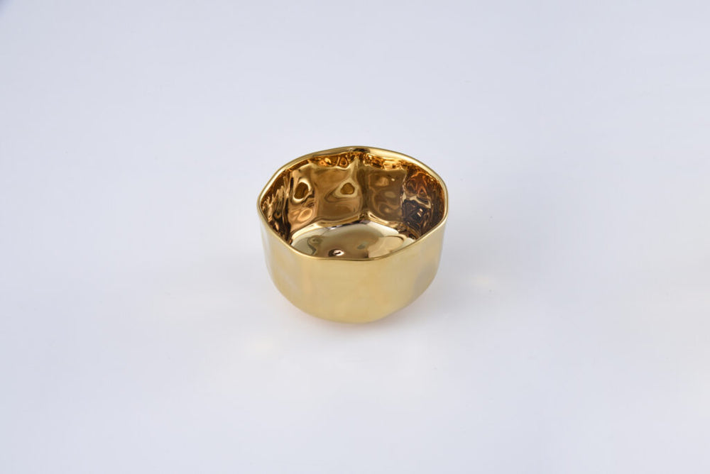 This snack bowl boasts a unique and sophisticated design that's sure to impress your guests. Its smooth finish and beautiful gold details make it a versatile piece that can be used for serving snacks, dips, sauces, and more.