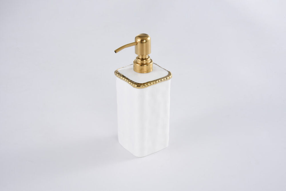 Upgrade to the Sienna White and Gold Soap Dispenser and transform your bathroom into a luxurious oasis.