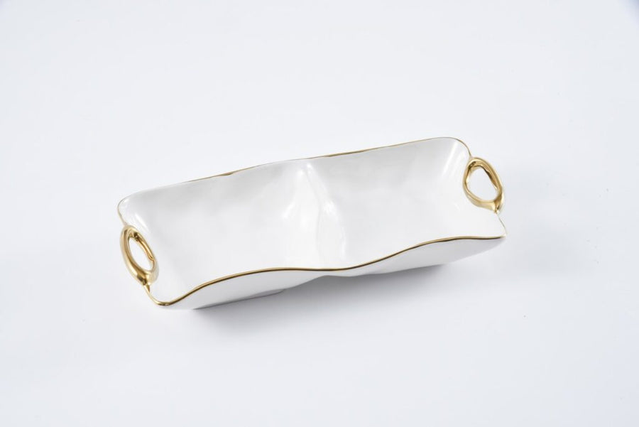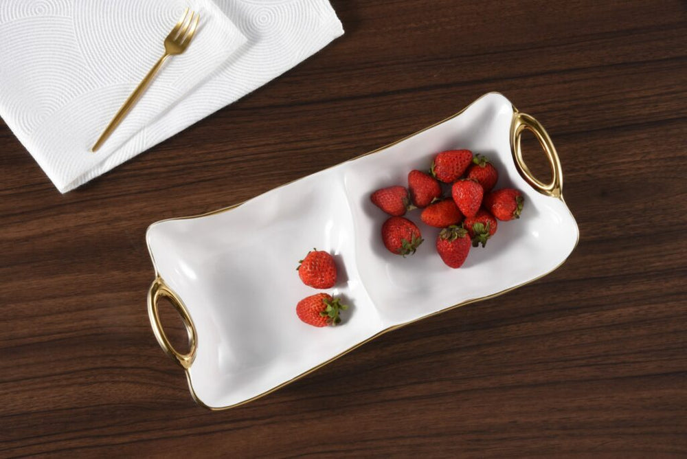 Embrace the perfect blend of style and practicality with our Layla Two Sectional Server with Golden Handles. Elevate your entertaining game and create unforgettable moments with this exquisite addition to your dining collection.