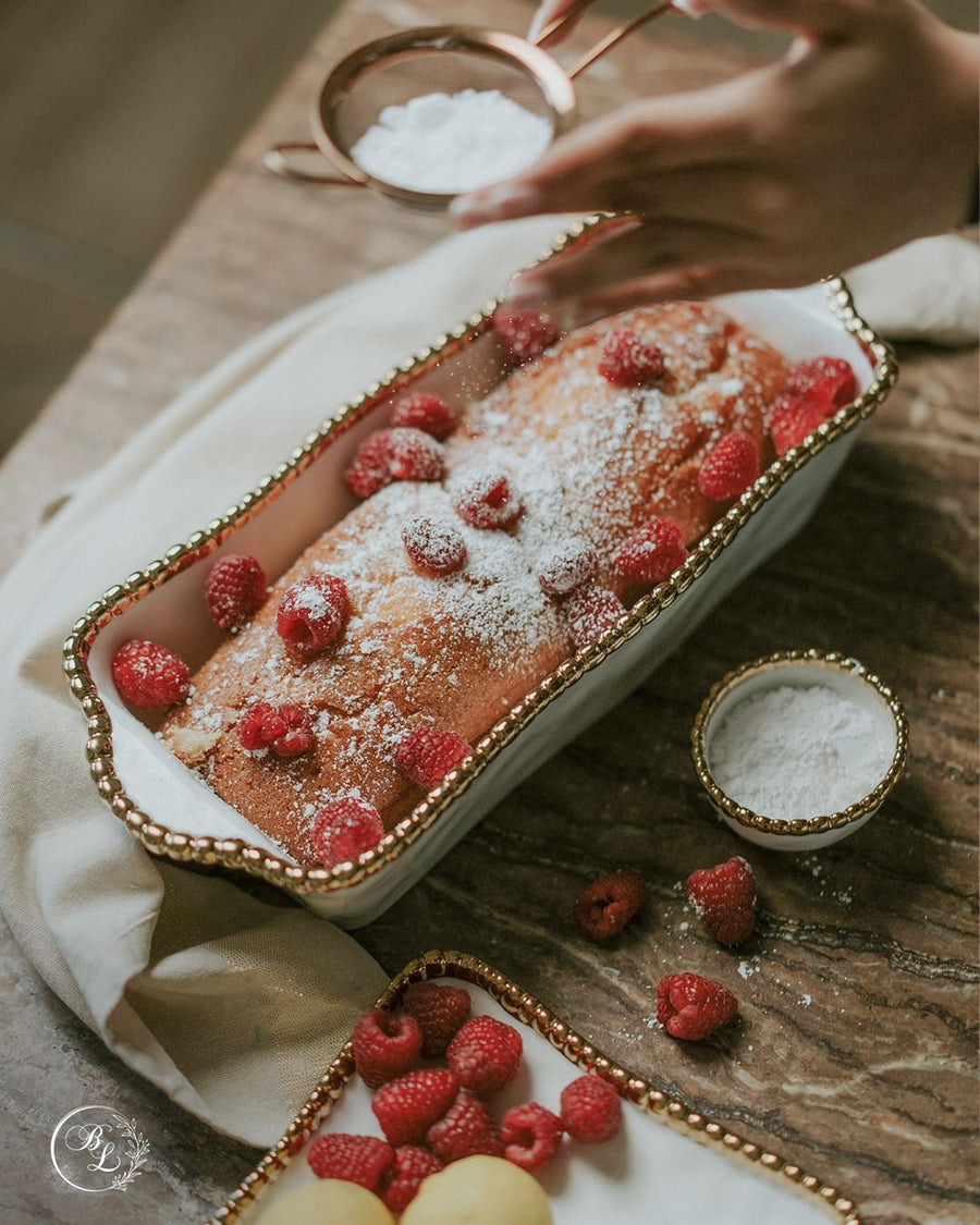 The elegant and functional "Sienna White and Gold Loaf Baking Dish"!